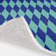 My original artwork is featured on this pretty area rug, consisting of diamond shapes in a royal blue tone, patterned all over the surface of this rug on an aqua blue background for a retro mod and argyle style pattern. This particular rug is 8 feet by 10 feet in size and can be downsized to if you desire. The print covers the complete top of the rug, which is made of a poly-chenile material and hemmed edges.