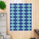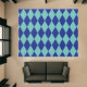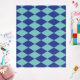 Blue Argyle Style Mod Retro Art Rug Large