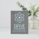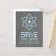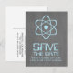 Cute and nerdy Atomic Chalkboard Save the Date Postcard featuring a simple atomic symbol in light blue on a chalkboard look background. This geeky and fun save the date postcard is perfect for announcing your science themed wedding! Easy to customize, simply add the details of your wedding in the spaces provided. Click "Customize It" to find more personalization options.