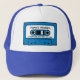 Blue vintage audio cassette tape. Vector icon with customizable colors. Two custom text fields.