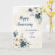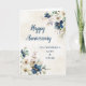 Happy wedding anniversary card for aunt and uncle with elegant navy blue and white watercolor flowers.