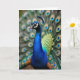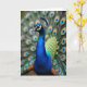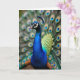 The front design shows a close-up of a striking male bird, with its head and gracefully curved neck in deep, glossy blue set slightly off-center. Its sharp eye, rimmed with white and black, feels like a steady gaze you’d share with a close friend ❤️. A small, fan-shaped crest sits on top of the head, adding a proud, gentle presence. Soft natural light brings out the fine, velvety texture along the neck and the subtle shift into golden-green, scale-like feathers across the back. Behind the blue figure, the tail spreads into layered greens, copper tones, and turquoise “eye” spots that read like a quiet bouquet for someone special 🌼. The background stays softly blurred, so the feather patterns form a dreamy halo around the bird. There is no text, just the rich blue neck contrasted against the shimmering green-and-copper fan of feathers.