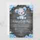 Blue Baby Bear Shower invitation rustic Invitation