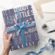 A blue baby boy baby gift wrap for a new baby gift or baby shower, featuring sayings for boys.
