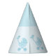 Celebrate your upcoming arrival with this Blue Baby Carriage Baby Shower Party Hat. This design features a cute baby carriage pattern with a soft blue background.