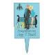 Adorable Baby Shower Cake Topper. Blue cake pick with crib and pregnant couple, chandelier and baby crib.