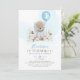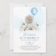 Blue Balloon Boho Teddy Bear 1st Birthday Invitation