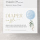 Invite friends and family in style and set the tone for your special day with this charming baby shower invitation. Design features blue balloon with eucalyptus leaves on white background.
