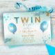 Blue Balloon Gold Twin Boy Baby Shower Invitation