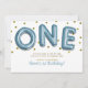 Blue Balloons Gold Confetti ONE 1st Birthday Party Invitation