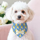This fun and fruity Blue Bananas Cute Dog Bone Custom Name Pet Bandana Collar is the perfect way to add a playful touch to your dog's style! The vibrant background is covered in adorable banana illustrations, and a cute dog bone shape displays your pet's custom name. Made from high-quality, durable fabric, this bandana is comfortable for everyday wear and easy to clean. It's a great way to show off your dog's playful personality and make them the most stylish pup on the block.