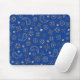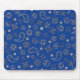 A great mousepad with a western theme. It features a blue, black, and white bandana pattern on it.