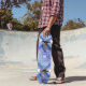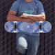 Dd brand skateboard, with graphics of a blue and white bandana pattern. Customize this board with your own text.