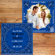 Save the Date for your country or western or rustic wedding, with this unique personalized photo bandana card. Whether your plans include a ranch, farm, barn, or a desert setting, this cowboy or cowgirl bandana will coordinate with your wedding theme. Authentic, detailed black and white design with a blue background. The back side of the square card features your photo incorporated into the bandana design and room for an additional message and includes a QR code for your wedding website.