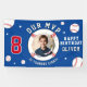 Blue Baseball Ball Themed Birthday Party Photo Backdrop Banner. Hit a home run with this personalized baseball birthday banner — perfect for your little MVP’s big day! Fun baseball-themed design with red stitching details. Personalized with your child’s photo, name, and age. Great for boys or girls who love sports. Customizable text and photo. Matches with baseball party décor and favors in the collection.