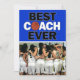 Make your own personalized "Best Coach Ever" thank you card for basketball coaches with blue team colors. Click to personalize the template and replace the placeholder with your own custom photo. The background color behind "Best Coach Ever" can be customized to any color you want - click to use the customization tools and change the "fill color," currently set on blue. It's a great thank you card for basketball coaches from youth leagues to high school and college basketball.