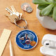 This cool customized high school basketball player photo gift features white typography of your team and player name on a blue keychain with a ball. Personalize with your student's photograph and class year as a proud sports parent. A great present for mom and dad.