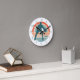 On this attractive clock, a blue silhouette basketball player is placed on a retro style circle rainbow background of distressed stripes. A custom name field in matching blue is at the lower right. Matching blue numbers make the clock easy to read.