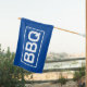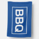 BBQ barbecue sign flag. Simple white on blue flag with a frame.