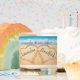 Dusty Blue Beach Wedding Names Hearts on Sand Designed by Sandy Closs