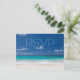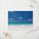 Blue beach wedding RSVP postcards with customizable text