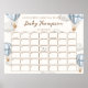 Celebrate your baby shower with this adorable Guess the Arrival Date game sign in a blue Bearly Wait theme. Featuring a sweet teddy bear in a blue hot air balloon surrounded by soft clouds, it’s the perfect interactive display for guests to predict baby’s arrival. Customisable and available in multiple sizes to match your baby shower décor. To add text or move elements of the design simply select the "Customize It" button above for more advanced customization features.
