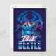 Check out this retrowave style graphic of Blue Beetle with the sun setting over the city!