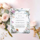 An elegant white background, decorated witth pink and blue wildflowers and a blue ribbon. Personalize and add a name and party details.