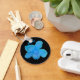 A beautiful blue Begonia flower sharply contrasted against a black background. This photo has been artificially colored to increase its impact. You can easily customize this keychain by typing your own text in the box provided, turning this keychain into a wonderful personalized gift.