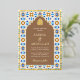 Amaze your guests with this elegant wedding invite featuring 'Bismillah' in Arabic calligraphy against a beautiful Persian tiles pattern background with real gold foil elements. Simply add your event details on this easy-to-use template to make it a one-of-a-kind invitation.