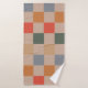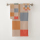 Blue Beige Orange Brown Checkered Gingham Pattern Bath Towel Set