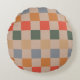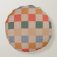 Blue Beige Orange Brown Checkered Gingham Pattern Round Pillow