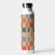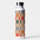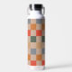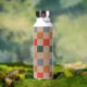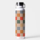 Blue Beige Orange Brown Checkered Gingham Pattern Water Bottle