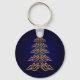 Get into the holiday spirit with this beautiful gold bell tree key chain with a blue background.