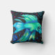 The design shows a light blue betafish swimming in dark blue water with little green, blue and red specks in it. The design is based on a painting done with colored pencils and felt pens. Whenever you look at this pillow you will be taken away into the colourful underwater world.