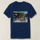 On this T-Shirt - Casual, relaxed, riding around on bicycles, these are some of the things that make up the comfortable lifestyle pictured in this original photograph by ZoeSPEAK, of an aqua blue bicycle leaning against a post in front of an open air bar in Key West, Florida. There is a leafy green bush in a tub, under an awning which matches the color of the bike. The dark interior of the place is filled with wooden bar stools, and aqua and cobalt blue umbrellas over the tables. An aqua blue bar in front completes the colorful photo, and the text above and under the photo says “KEY WEST”, “RELAX”.