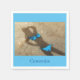 Blue two-piece bikini on beach sand female shadow to customize, personalize by changing to your name