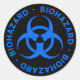 Black sticker with blue biohazard symbol and warning text.