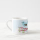 Blue birds on pink blossom branch. Espresso mug, click customise to add personalisation.
