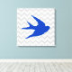 Blue Bird Silhouette on Chevron Stripes Canvas Print