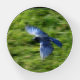 Blue bird soaring across a green pasture. paperweight