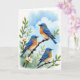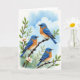 This design shows three small birds perched close together on a gently curving brown branch, their bodies angled as if they’re quietly keeping each other company ❤️. Their backs and wings are shaded in bright blue, while their chests glow with warm terracotta tones that soften into white along their bellies. The birds are staggered upward on the branch, creating a natural flow that feels like a friendly little gathering in mid-conversation. Fresh green leaves sprout around them, and a few white blossoms open nearby with tiny orange centers, adding a tender, springlike touch 🌼. Behind them, a pale sky blends soft blues and whites into airy cloud shapes that keep the scene light and calm. Any lettering sits at the top in a simple, dark gray tone, leaving the birds as the main focus. The feather details are crisp against the softly washed background, and the branch shows subtle shading where the leaves and blossoms cluster. Small white flowers with orange stamens dot the branch near the birds’ feet.