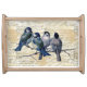 Beautiful little blue birds on a tree branch are set on a great music collage of vintage sheet music in cream and tan, to make a lovely serving tray. Other vintage music items and designs are available in my Zazzle store.