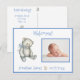 Adorable baby blue teddy bear with typography of “Welcome” to introduce your new baby boy.
