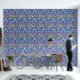 Blue black abstract leaves pattern Wallpaper.Refresh your space with this beautiful blue and black leaves pattern wallpaper. Perfect for a kitchen backsplash, bathroom and more.