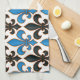 Blue Black Baroque Fleur-de-lis Pattern Design Kitchen Towel