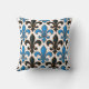 Blue Black Baroque Fleur-de-lis Pattern Design Throw Pillow