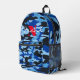 Sleek blue/black camo backpack with bold personalization! [Alt-text: Modern camo-print polyester bag with 18L capacity, padded straps, and front-printed name/logo area.] Perfect for work, school, or outdoor adventures. Fast shipping! Design online with Zazzle’s creator tool. Coordinates with camo lunch boxes. Water-resistant fabric. A unique gift for employees, students, or military enthusiasts!