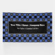 Your company logo forms part of this checkered design in medium blue and black. All you need to do is upload it once and add your main and secondary text via the placeholders and you'll have a smart, corporate design that scales from compact to super-size. Perfect for your conference table, trade show booth or any workplace and office events.