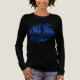 Modern blue and black t-shirt featuring the Chicago skyline. Custom text on the front of the top. Keep the "Chicago" text or use the template to change the text and create your own t-shirt with your desired name, or phrase. The Chicago, Illinois skyline is on the front of the shirt. Blue and black colors shown.